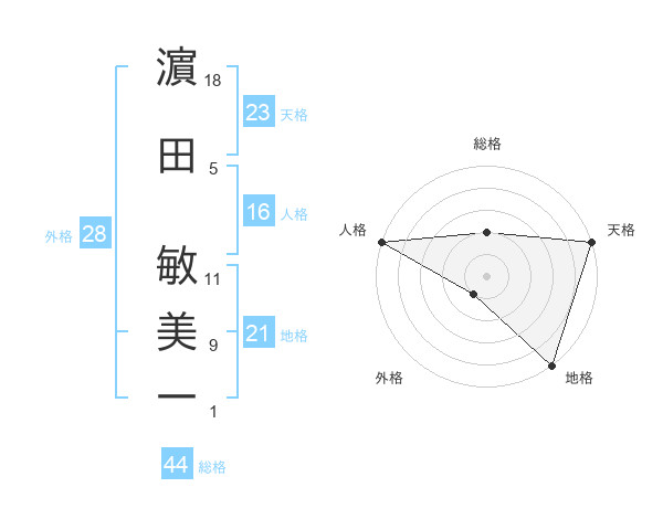濵田 敏美一さんを姓名の画数から五運を鑑定