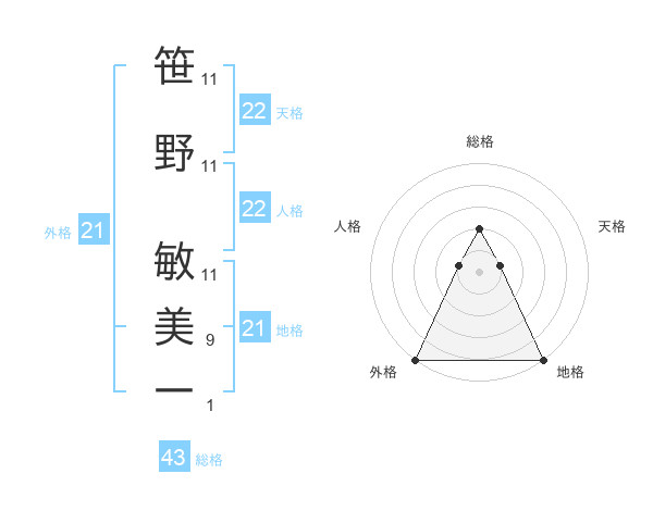 笹野 敏美一さんを姓名の画数から五運を鑑定