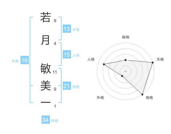 若月 敏美一さんを姓名の画数から五運を鑑定