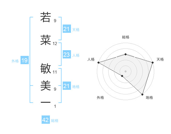 若菜 敏美一さんを姓名の画数から五運を鑑定