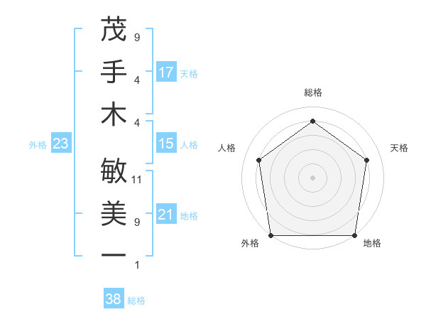 茂手木 敏美一さんを姓名の画数から五運を鑑定