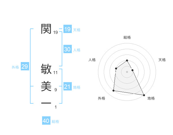 関 敏美一さんの総格は40画の2点!