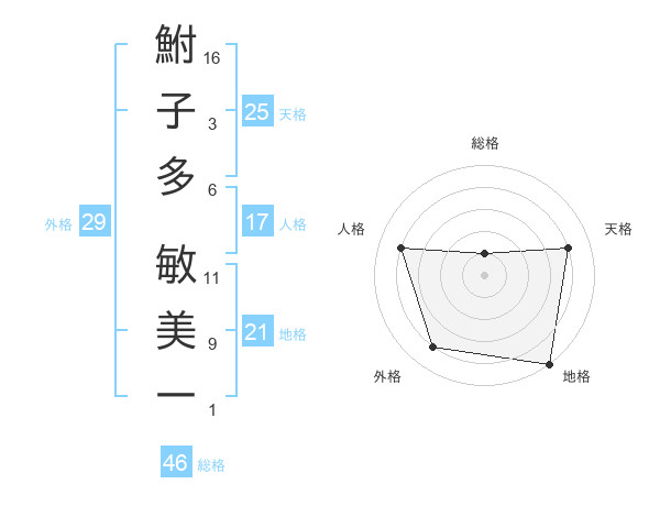 鮒子多 敏美一さんを姓名の画数から五運を鑑定