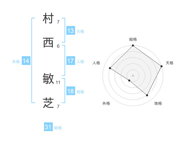 村西 敏芝さんの総格は31画の5点!