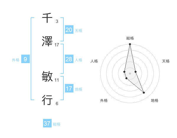 千澤 敏行さんの総格は37画の5点!