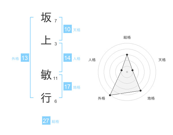 坂上 敏行さんの総格は27画の3点!