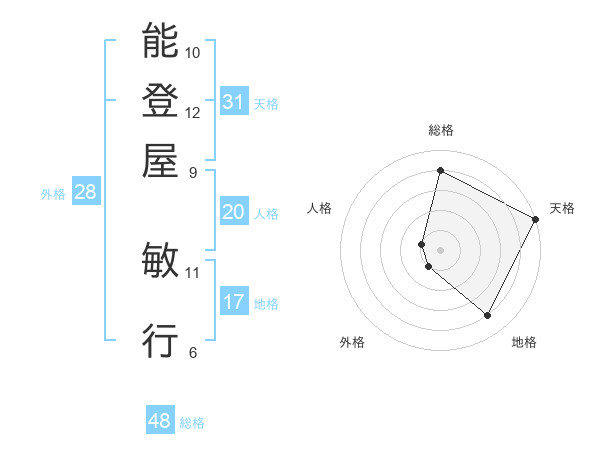 能登屋 敏行さんを姓名の画数から五運を鑑定