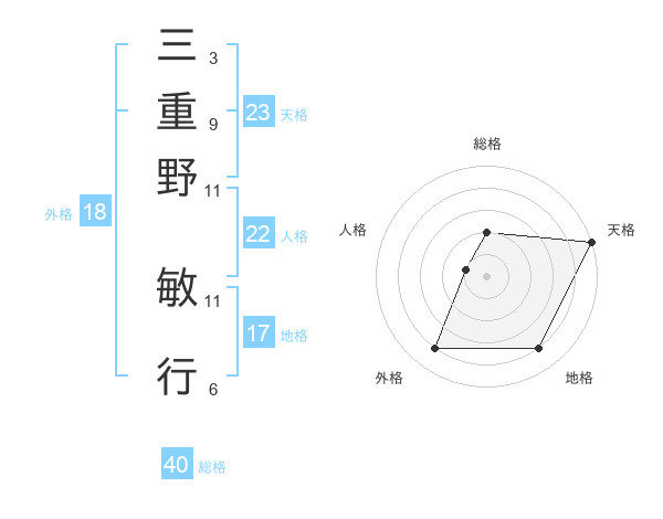 三重野 敏行さんを姓名の画数から五運を鑑定