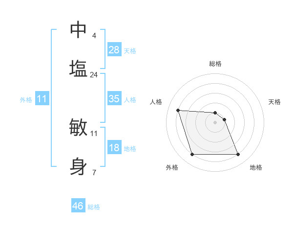 中塩 敏身さんの地格は18画の4点!