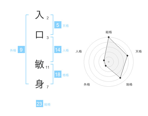 入口 敏身さんの総格は23画の5点!