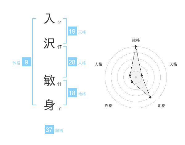 入沢 敏身さんの総格は37画の5点!