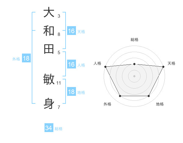 大和田 敏身さんを姓名の画数から五運を鑑定