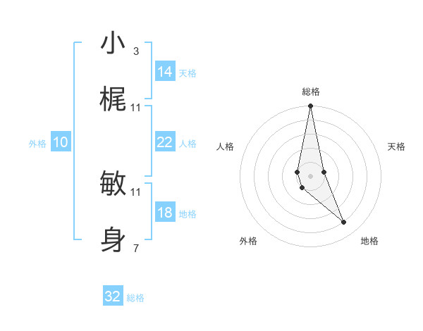 小梶 敏身さんの総格は32画の5点!