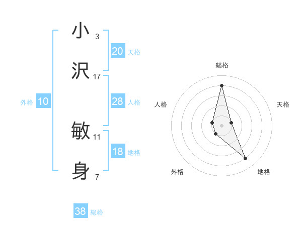 小沢 敏身さんを姓名の画数から五運を鑑定