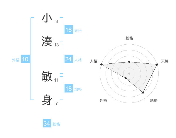 小湊 敏身さんを姓名の画数から五運を鑑定