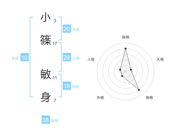 小篠 敏身さんの総格は38画の4点!