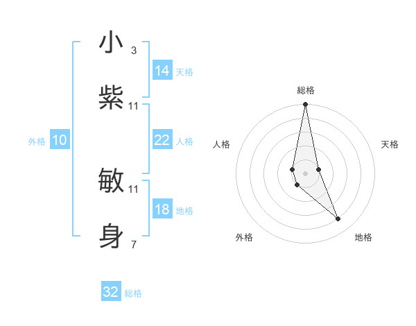 小紫 敏身さんの総格は32画の5点!