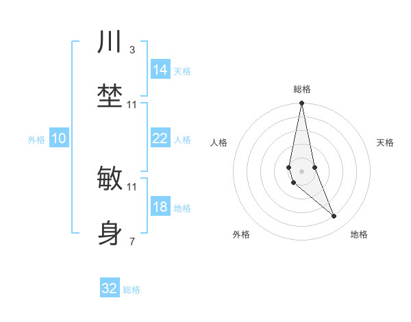 川埜 敏身さんの総格は32画の5点!