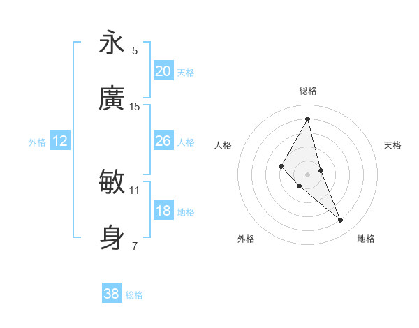 永廣 敏身さんを姓名の画数から五運を鑑定