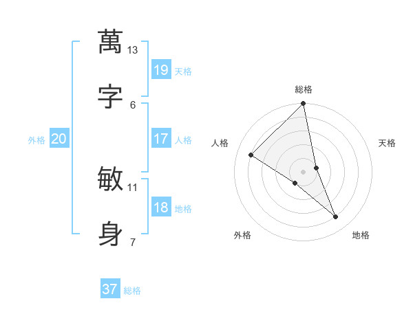 萬字 敏身さんの天格は19画の1点!