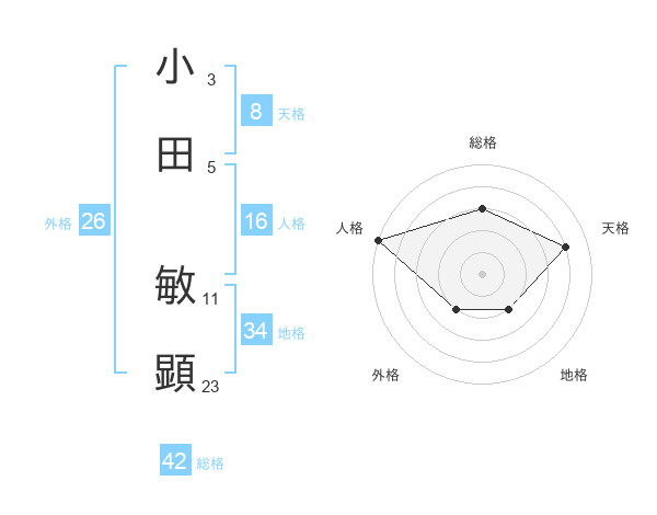 小田 敏顕さんを姓名の画数から五運を鑑定