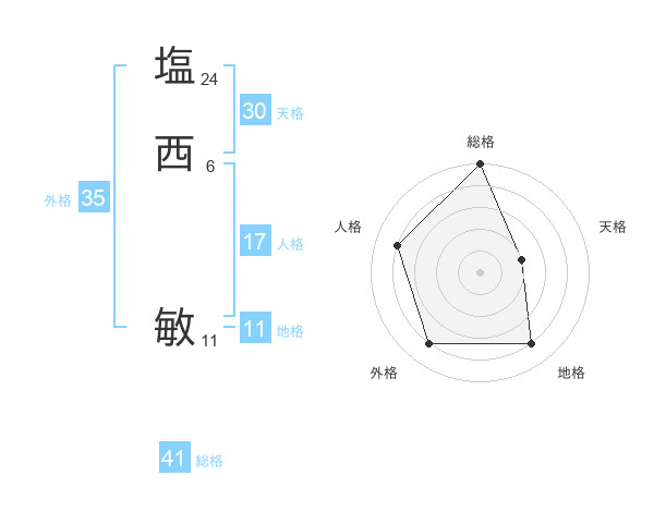 塩西 敏さんの総格は41画の5点!