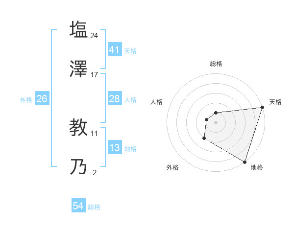 塩澤 教乃さんを姓名の画数から五運を鑑定