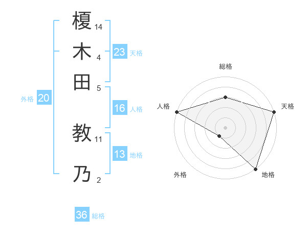 榎木田 教乃さんを姓名の画数から五運を鑑定