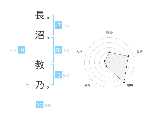長沼 教乃さんの天格は17画の4点!