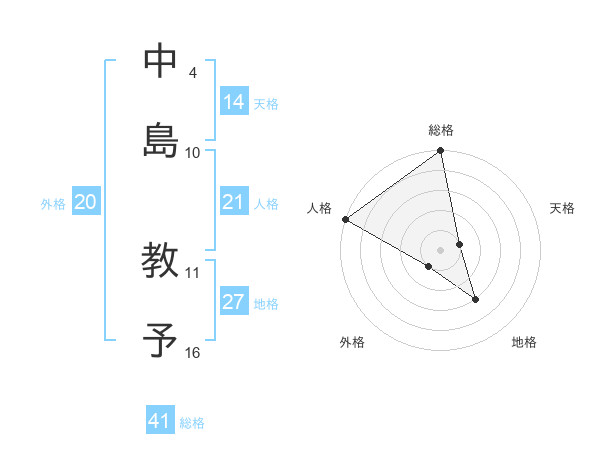 中島 教予さんの総格は41画の5点!