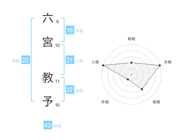 六宮 教予さんの総格は43画の2点!
