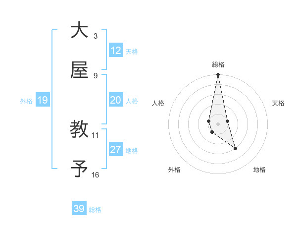 大屋 教予さんの総格は39画の5点!