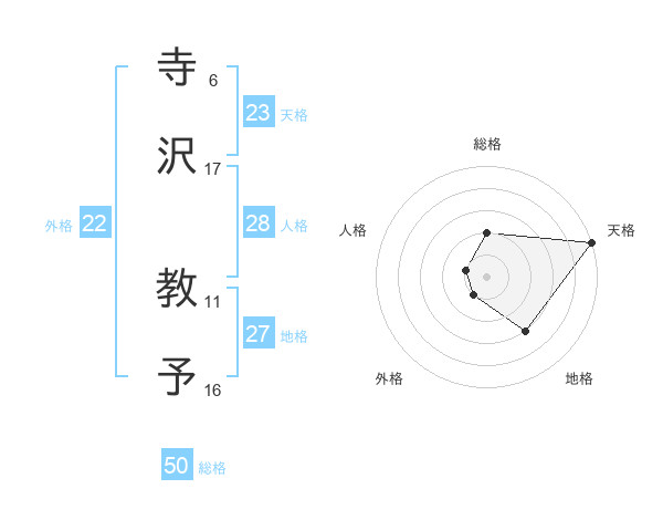寺沢 教予さんの総格は50画の2点!