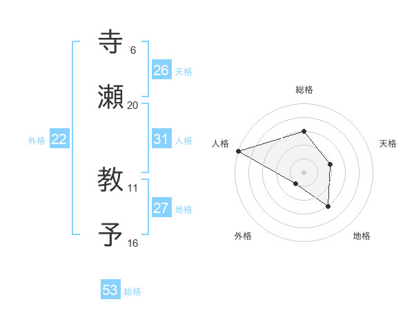 寺瀬 教予さんを姓名の画数から五運を鑑定