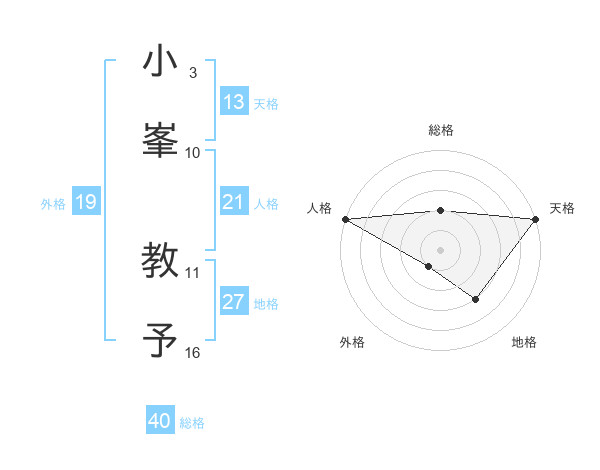 小峯 教予さんの天格は13画の5点!