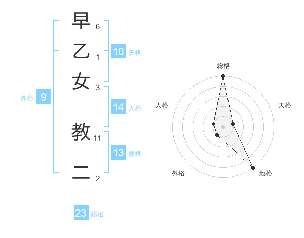 早乙女 教二さんを姓名の画数から五運を鑑定