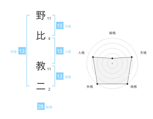 野比 教二さんの外格は13画の5点!