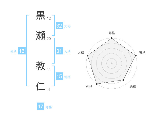 黒瀬 教仁さんの総格は47画の5点!