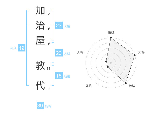 加治屋 教代さんを姓名の画数から五運を鑑定
