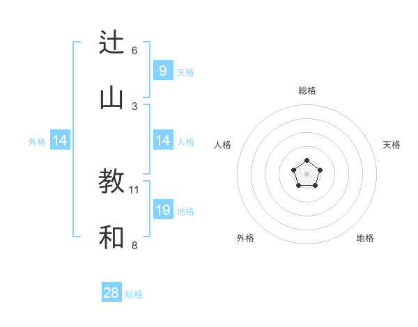 辻山 教和さんの総格は28画の1点!