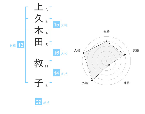 上久木田 教子さんを姓名の画数から五運を鑑定
