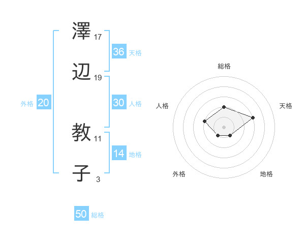 澤辺 教子さんの総格は50画の2点!