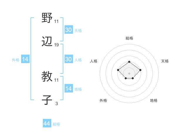 野辺 教子さんの総格は44画の2点!