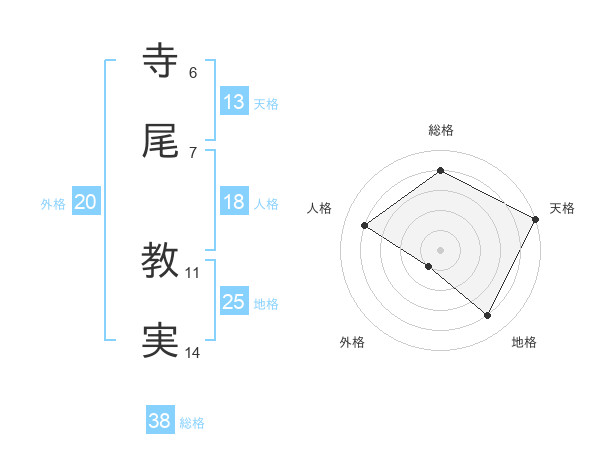 寺尾 教実さんの総格は38画の4点!