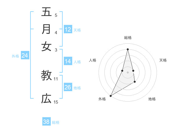 五月女 教広さんの総格は38画の4点!