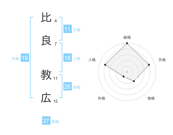 比良 教広さんの総格は37画の5点!