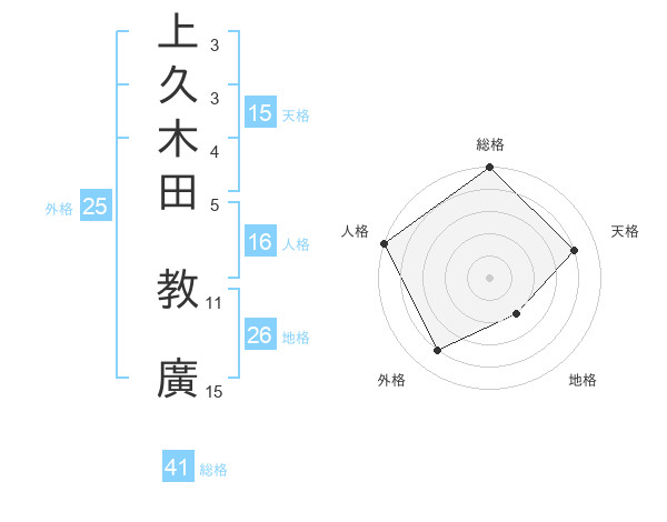 上久木田 教廣さんの天格は15画の4点!