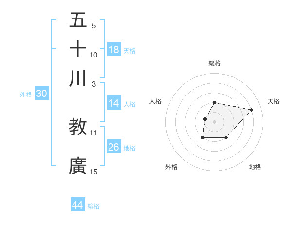 五十川 教廣さんを姓名の画数から五運を鑑定