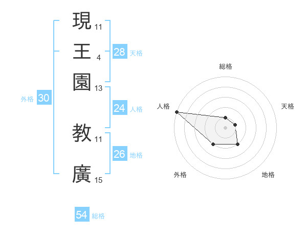現王園 教廣さんを姓名の画数から五運を鑑定