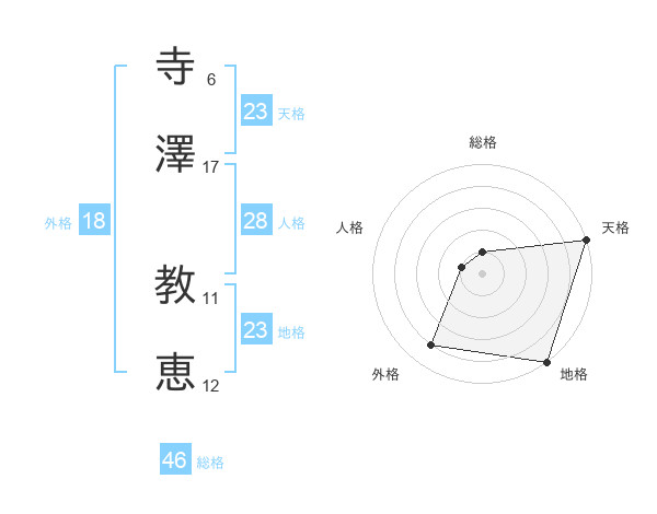 寺澤 教恵さんの天格は23画の5点!